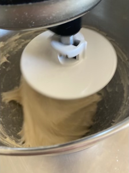 Start met het maken van het deeg. Doe hiervoor 400 gram bloem, het zout, het gist, de melk, de roomboter, het ei en de kristalsuiker samen in een kom. Meng dit met een mixer met deeghaken eerst rustig door elkaar. Mix het hierna nog zeker 10 minuten tot een soepel deeg.